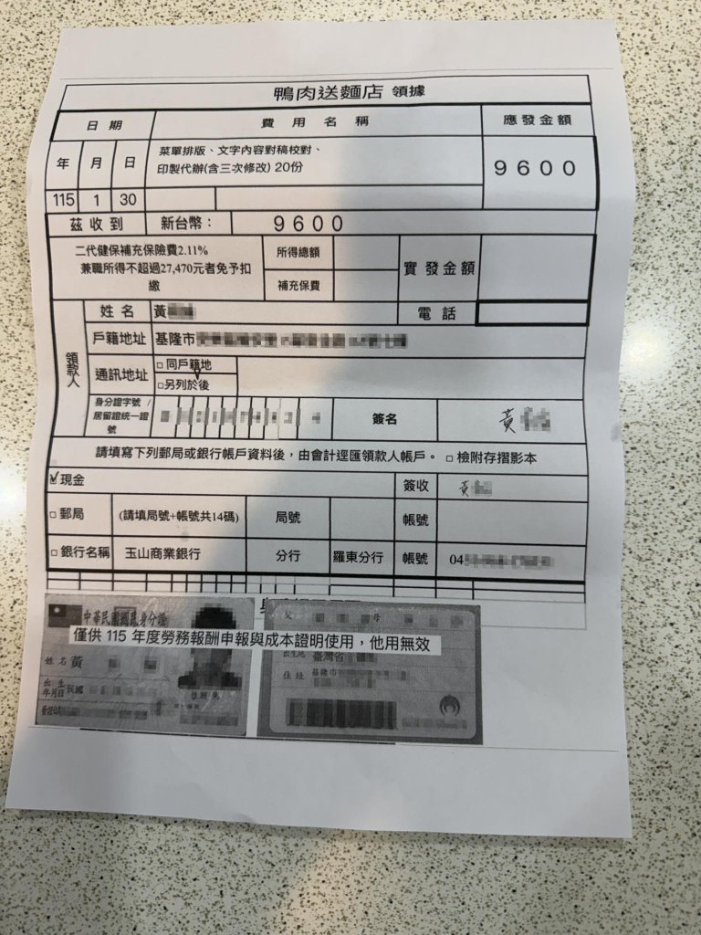有家長帶小孩到宜蘭冬山的鴨肉送用餐,小孩拿實體菜單玩摺到,店員求償480元,家長賠償後驚訝菜單成本居然那麼高。鴨肉送指出,是新菜單為年前重新設計與印製,製作總費用共9600元,以20份平均換算單張成本約480元。