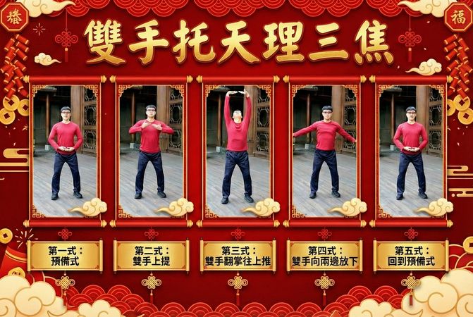 改善久坐不適未必需高強度運動。洪正君醫師建議,養成定時起身活動習慣,搭配簡單伸展,有助恢復循環與彈性。可參考中醫養生功法「八段錦」中的溫和動作融入日常。例如「雙手托天理三焦」向上伸展,可延展脊椎、放鬆肩頸;「左右開弓似射雕」開胸動作改善含胸圓肩;「五勞七傷向後瞧」有助緩解低頭族肩頸僵硬;「兩手攀足固腎腰」前彎動作可促進下肢血液循環,減輕腫脹與疲勞。