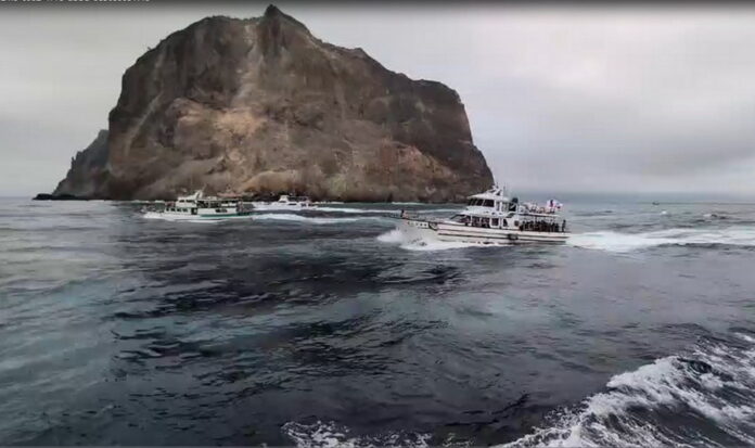每年龜山島開放登島觀光之前,東北角管理處都會舉辦淨灘活動,今年就選在2月26日淨灘,但因海象狀況不穩定,岸際浪高不適合進行大規模登岸作業,而且近午海浪會越來越大,恐會影響回程安全,船隊確定無法登島後改以「海上巡禮」方式繞島致意。