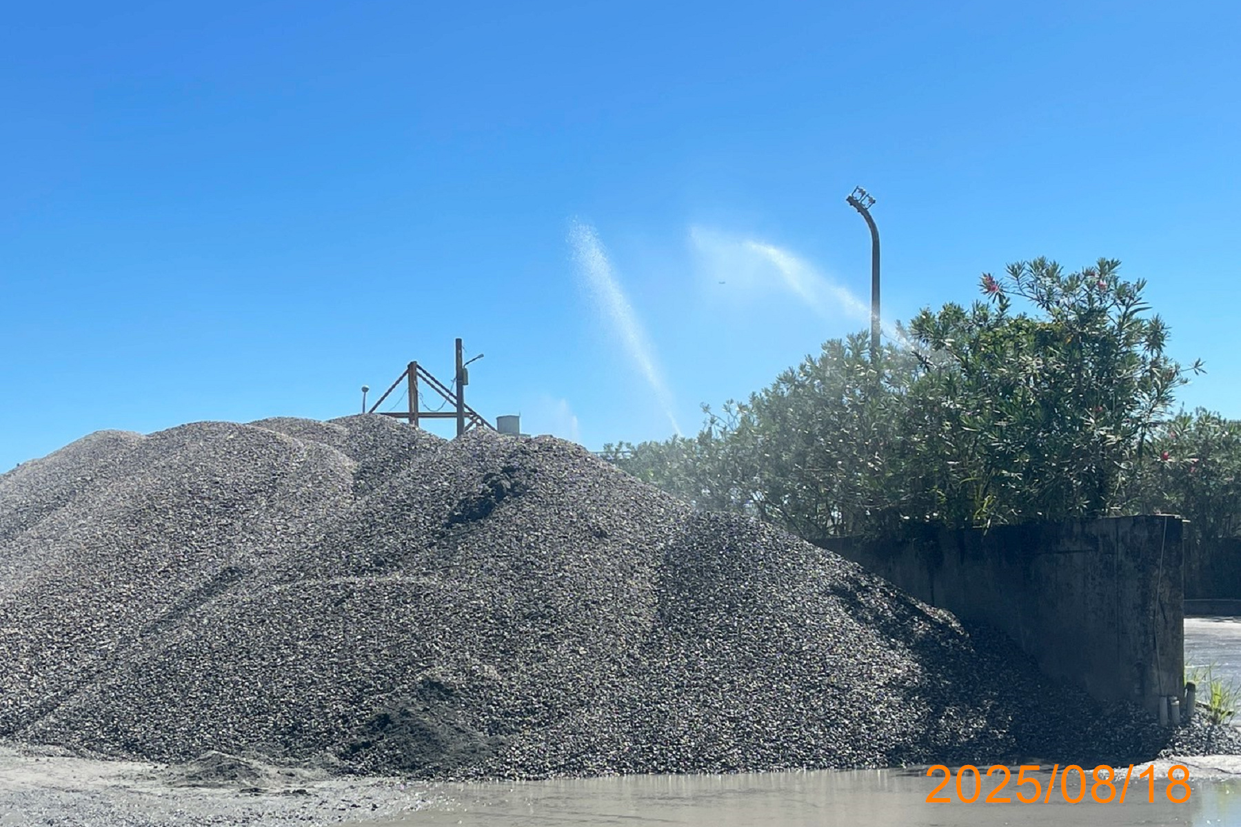 ▲砂石堆置場空品感測連動智能灑水,以維良好的空氣品質。