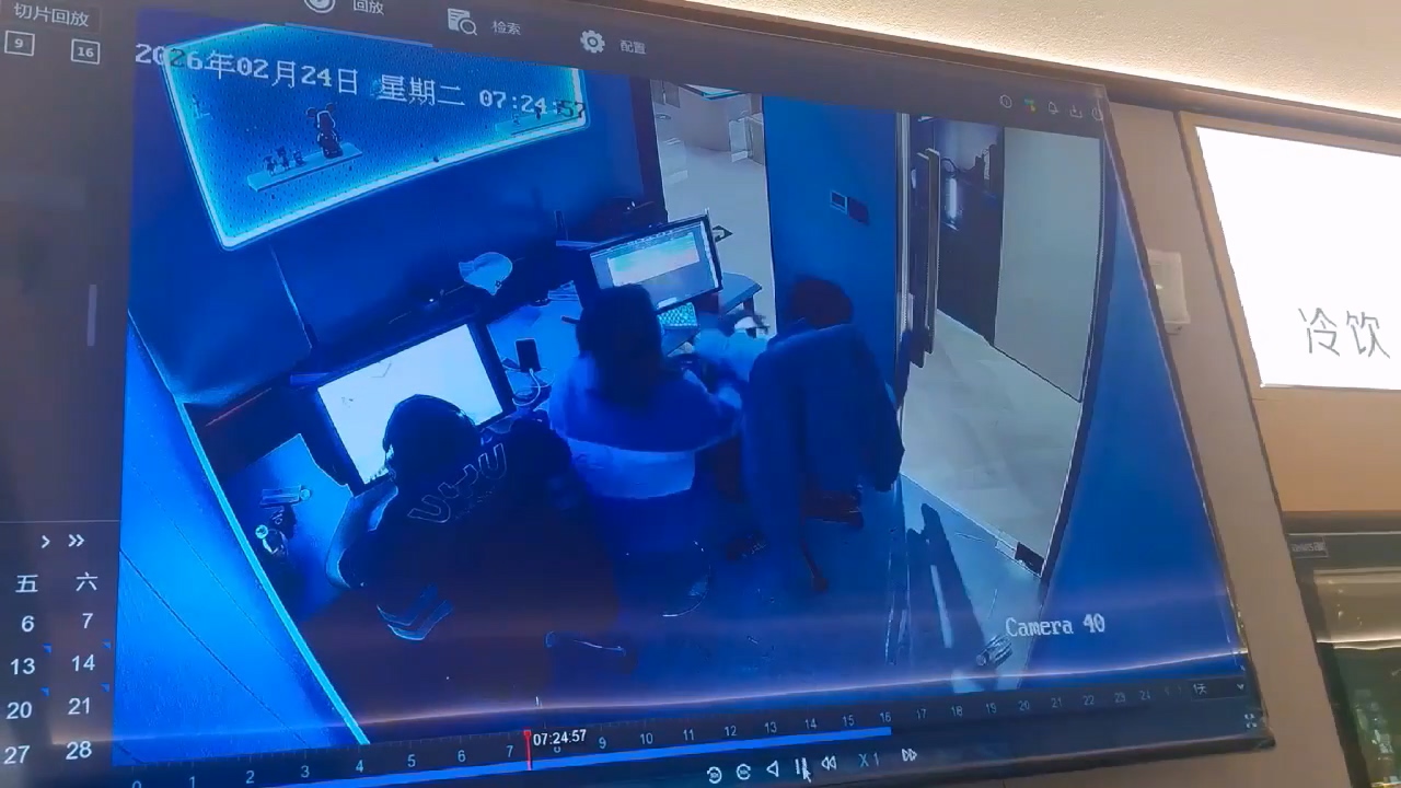 湖南岳陽的一家網咖內,一名女子對正在打遊戲的年輕男子裸露身體,隨後搬來椅子靠著男子坐下,並強行摟抱、糾纏撕扯。