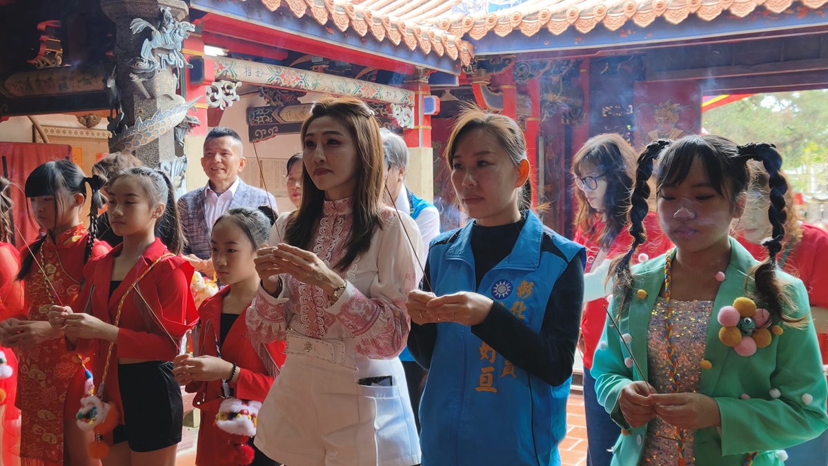 ▲台語歌壇「美魔女」楊惠絜再度前往清水岩寺,並帶領旗下8位選秀節目小歌手一同宣傳家扶燈籠。(圖/記者蕭麗鳳攝)