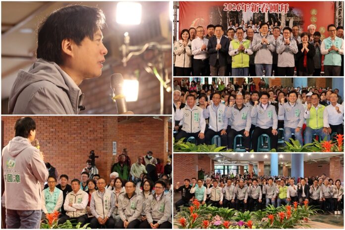 民進黨宜蘭縣黨部27日在議會大廳舉辦新春團拜,黨部主委邱嘉進、黨公職及各類提名的參選人,呼籲宜蘭鄉親全力支持林國漳當選縣長,並讓該黨提名的縣議員席次能在議會過半!