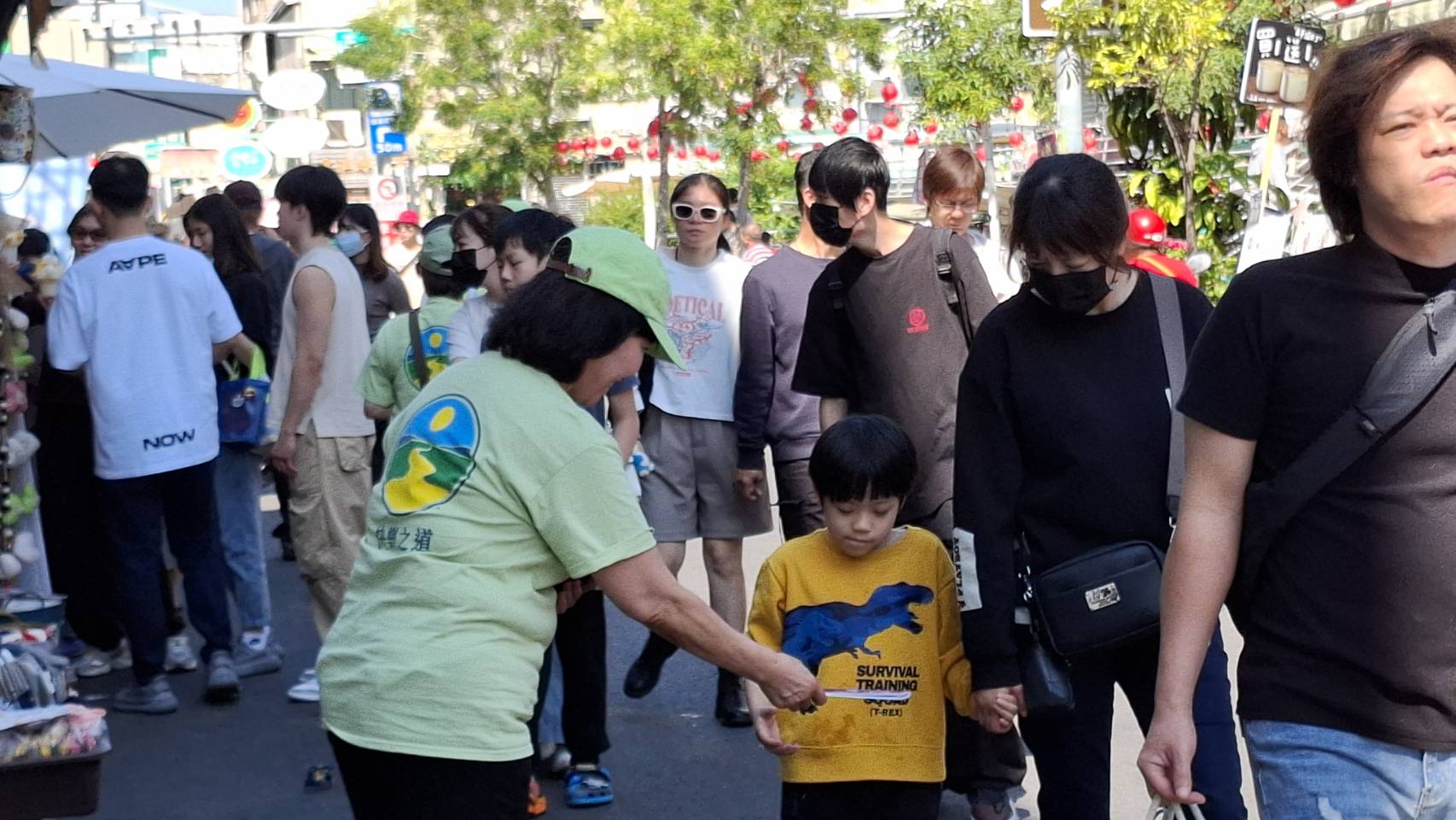 ▲志工於台南國華街發送《快樂之道》手冊,在熱鬧街區向民眾分享正向生活理念。(圖/高雄山達基教會)