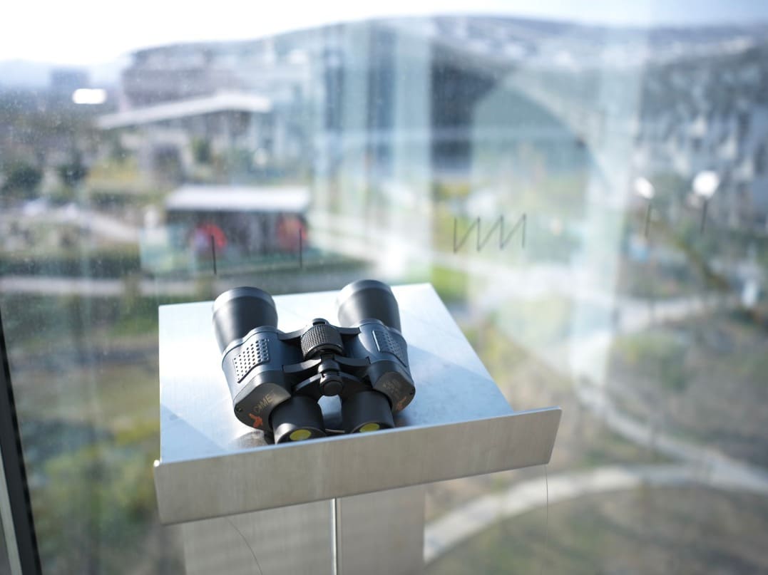 中美館六樓的望遠鏡,其一設於五樓往六樓的外掛梯,視野遼闊,可盡覽中央公園熱門的野餐點、會展中心及周邊城市景觀。