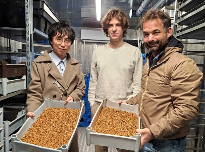 ▲南臺科大博士生林韋成於比利時 HEPH 大學,執行 AI 智慧昆蟲飼養系統之學術與商業開發調研。(圖/南臺科大提供)