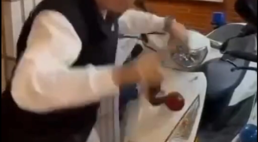 影片中所長手指伸進嘴裡後,用手去摸車牌後含進嘴裡 問說「學校有沒有教你洗車?」「學校沒有教,所以所長教,我昨天晚上已經幫他們洗好了,我有教了,乾淨的」。