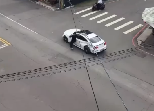 台中保時捷與賓士車駕駛為了債務問題在街頭飛車追逐,當街打鬥。翻攝畫面