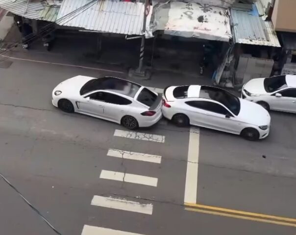賓士車與保時捷相撞。翻攝畫面