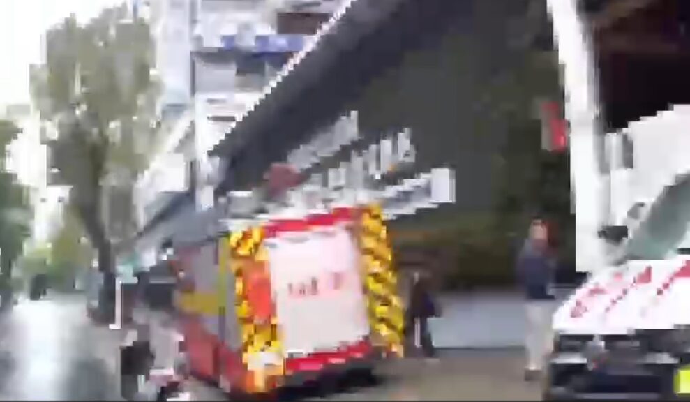 警消人員抵達工人墜樓國賓飯店調查處理。翻攝畫面