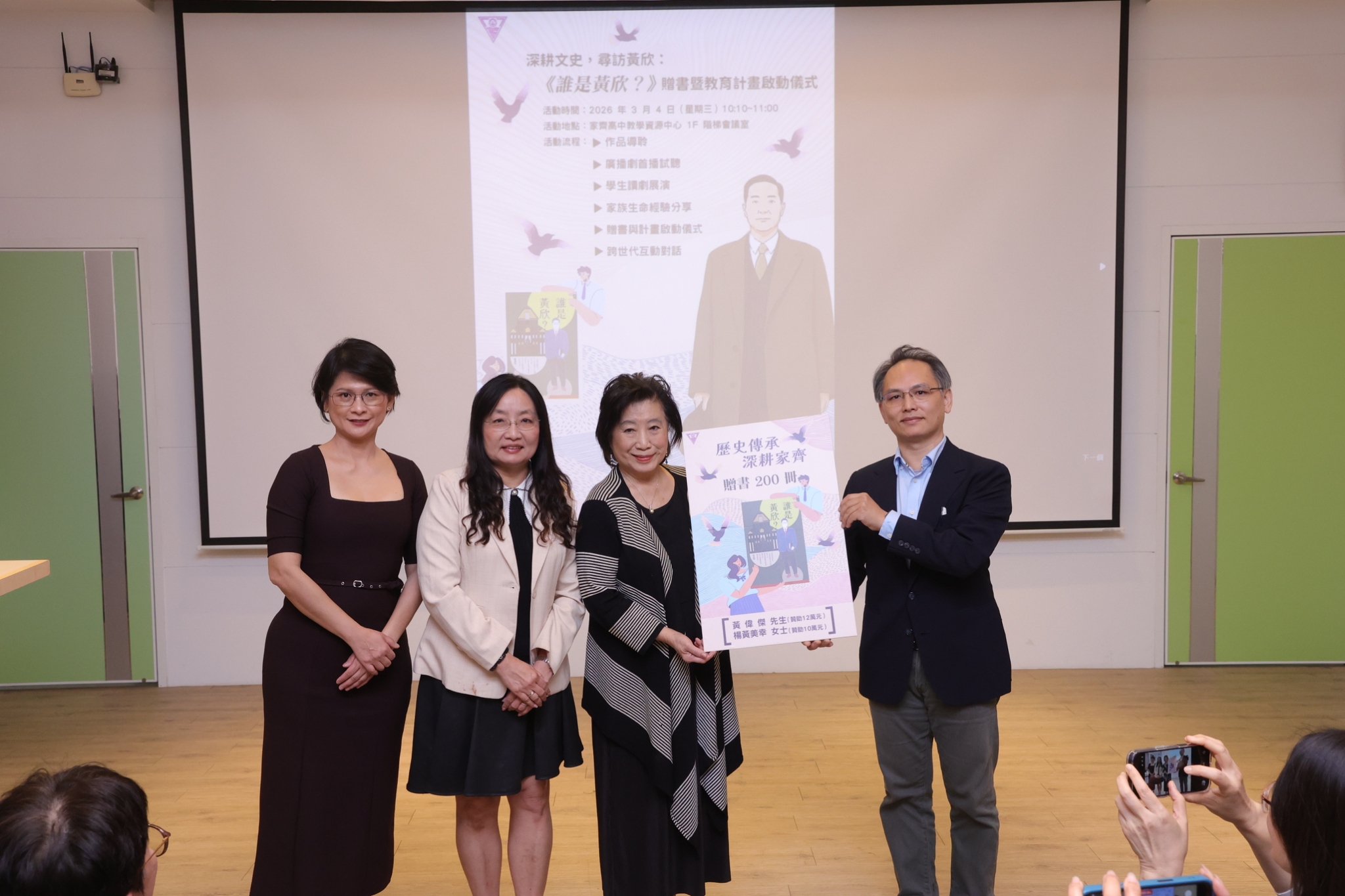 國立台南家齊高中於4日上午盛大舉辦《誰是黃欣?》贈書儀式暨「深耕文史尋訪黃欣」教育計畫啟動會,這場集結史實考據與當代藝文轉譯的教育行動,標誌著一段塵封已久的府城仕紳記憶重新接軌校園生活,展現出由文字閱讀邁向全域實踐的無限可能,計畫得以順利啟航,背後最核心的力量來自於黃欣先生後輩子孫的鼎力支持。