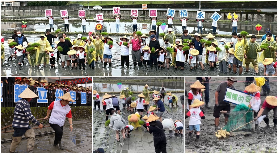 食農教育向下紮根,羅東鎮立幼兒園3月5日舉辦親子插秧暨趕鴨活動,近300位親師生走入田間,跟著鎮長吳秋齡和在地農友透過插秧趕鴨的實作過程,體驗「鴨稻共生」的友善農趣。
