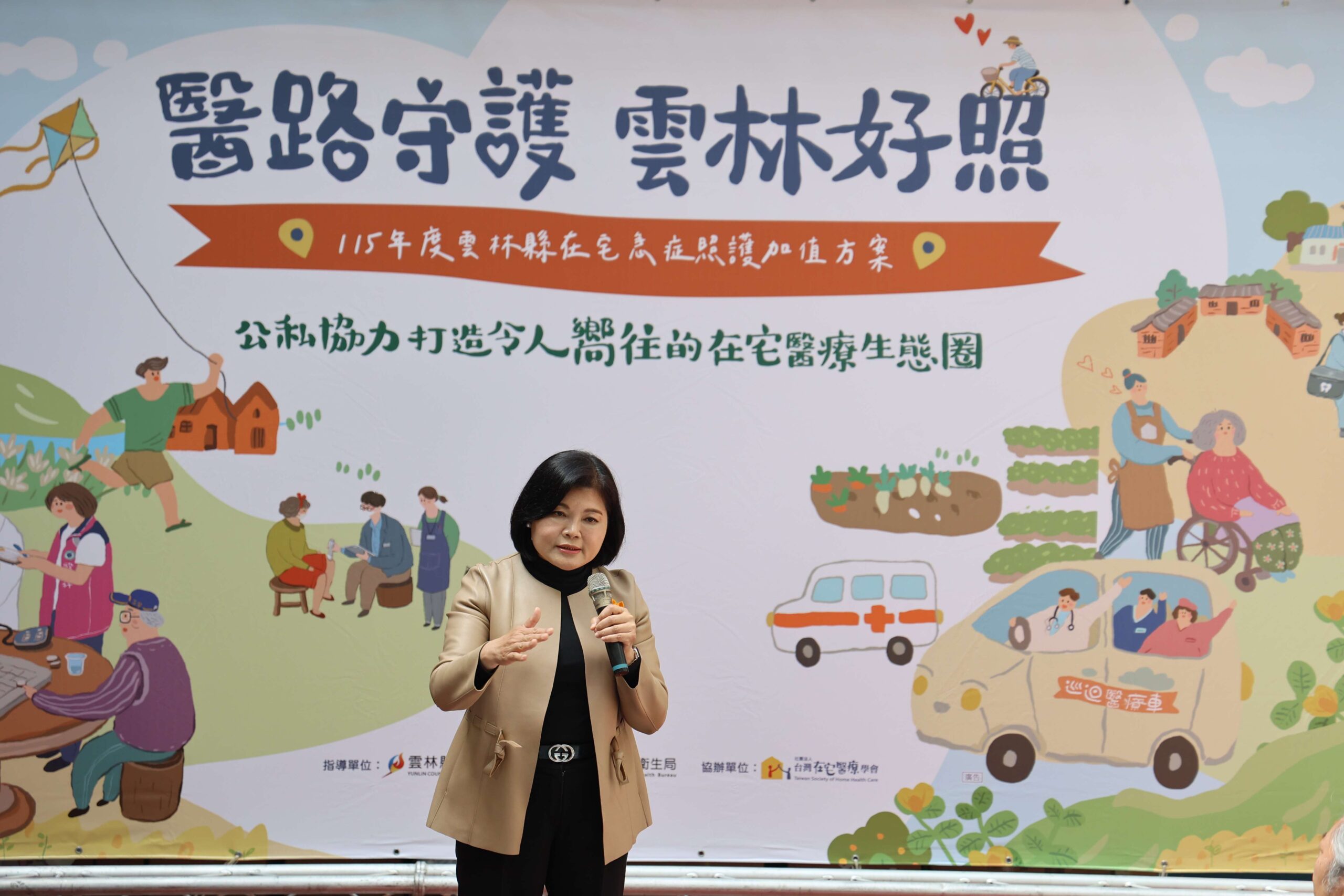 雲林縣政府今(3/6)日於雲林縣衛生局一樓中庭舉辦「115年度雲林縣在宅急症照護加值方案啟動記者會」,縣長張麗善開心分享透過支援中心統籌跨院協調、設備調度與教育訓練,雲林在宅急症已由試辦計畫邁向穩定運作之制度雛形,奠定後續制度整合與示範推動基礎。同時,現場邀集副縣長陳璧君、雲林縣衛生局長曾春美、縣議員李明哲、陳芳盈、臺大雲林分院、中國醫藥大學北港附設醫院及雲林基督教醫院等六大醫院、三大核心醫院團隊、醫界公會代表共同見證雲林在宅醫療政策邁入制度整合新階段