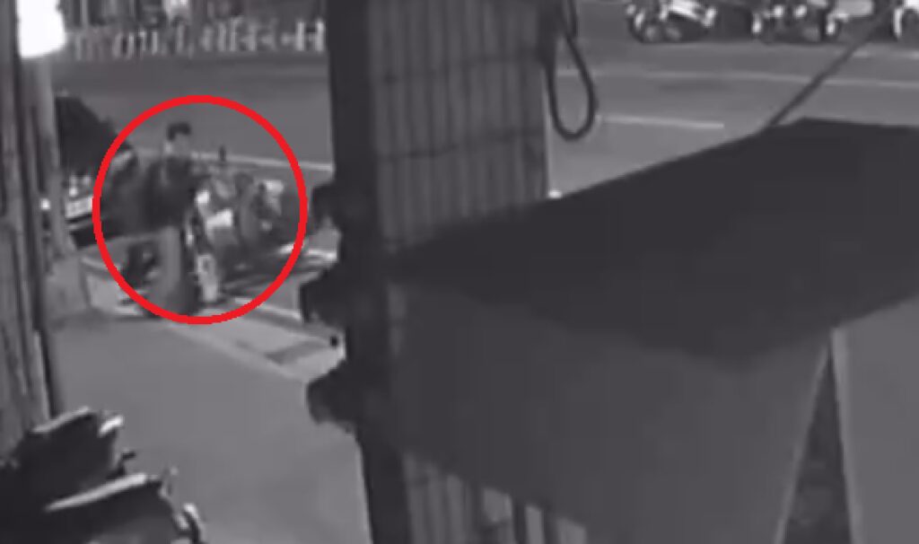 台中醉漢推倒停路邊機車(紅圈處)。翻攝畫面