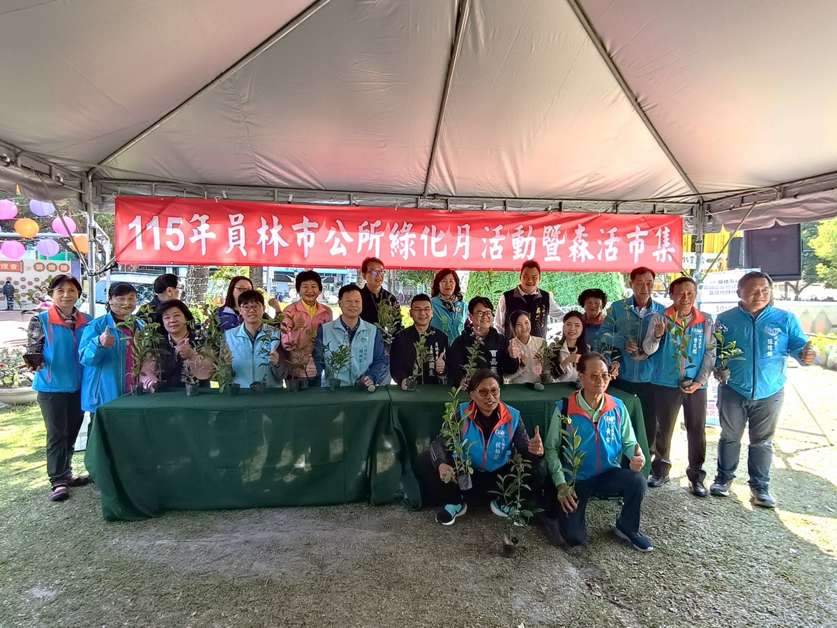 隨著3月12日植樹節腳步將近,員林市公所響應115年植樹月活動,於今(7)日上午在綠意盎然的員林公園舉辦「綠化月活動暨森活市集」,吸引許多市民朋友攜家帶眷前來參與,共同感受春日綠意。活動現場分上下午場免費發送桂花、車桑子(上午)、台灣樹蘭及藍蝴蝶(下午)等共4,000株樹苗,由員林市代理市長賴致富、市民代表會主席張國良、彰化縣政府秘書游筑凱、縣議員曹嘉豪及多位代表、里長共同到場致意並發放樹苗,現場氣氛熱絡,市民踴躍索取。