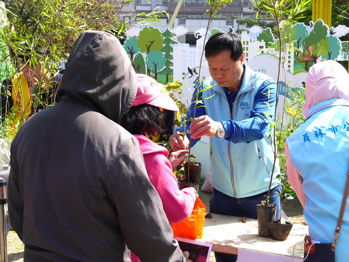 代理市長賴致富指出,3月12日就是植樹節,綠美化是政府推動愛地球的重要指標政策,今日藉由樹苗發放活動,讓植樹的概念深植在每位市民的心中,「前人種樹,後人乘涼」,就是一種非常好的觀念,只要種下一棵樹,就是為未來播下希望。植樹不僅能減碳、改善空氣品質、調節水源與鞏固土壤,更能美化環境、陶冶心靈,同時為鳥類、蝴蝶與昆蟲打造友善棲地,讓下一代擁有更永續、更美好的生活環境,誠摯邀請鄉親隨時加入植樹造林行列。