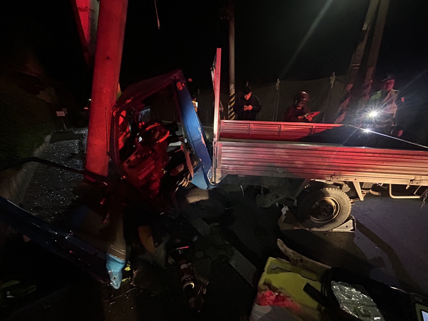 【Lai傳媒、記者爆料網/周庭慶/雲林報導】雲林縣林內鄉昨(6)日深發生死亡車禍!雲林縣消防局23時16獲報,林內鄉三權路383號前1部小貨車自撞電線桿,駕駛受困車內,派遣林內分隊人員及車丙前往救護,11時43分駕駛30歲吳姓男子脫困,人已OHCA,送斗六台大醫院急救。
