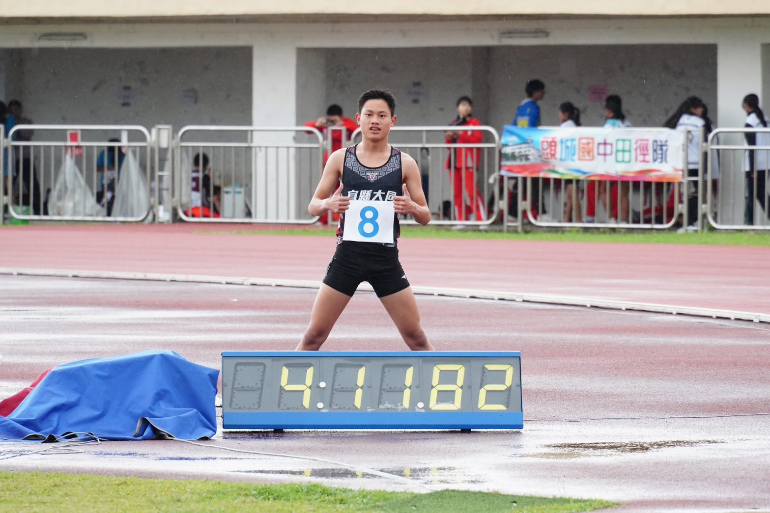 國中男生1500公尺,胡一帆(大同國中),成績4分11秒81。