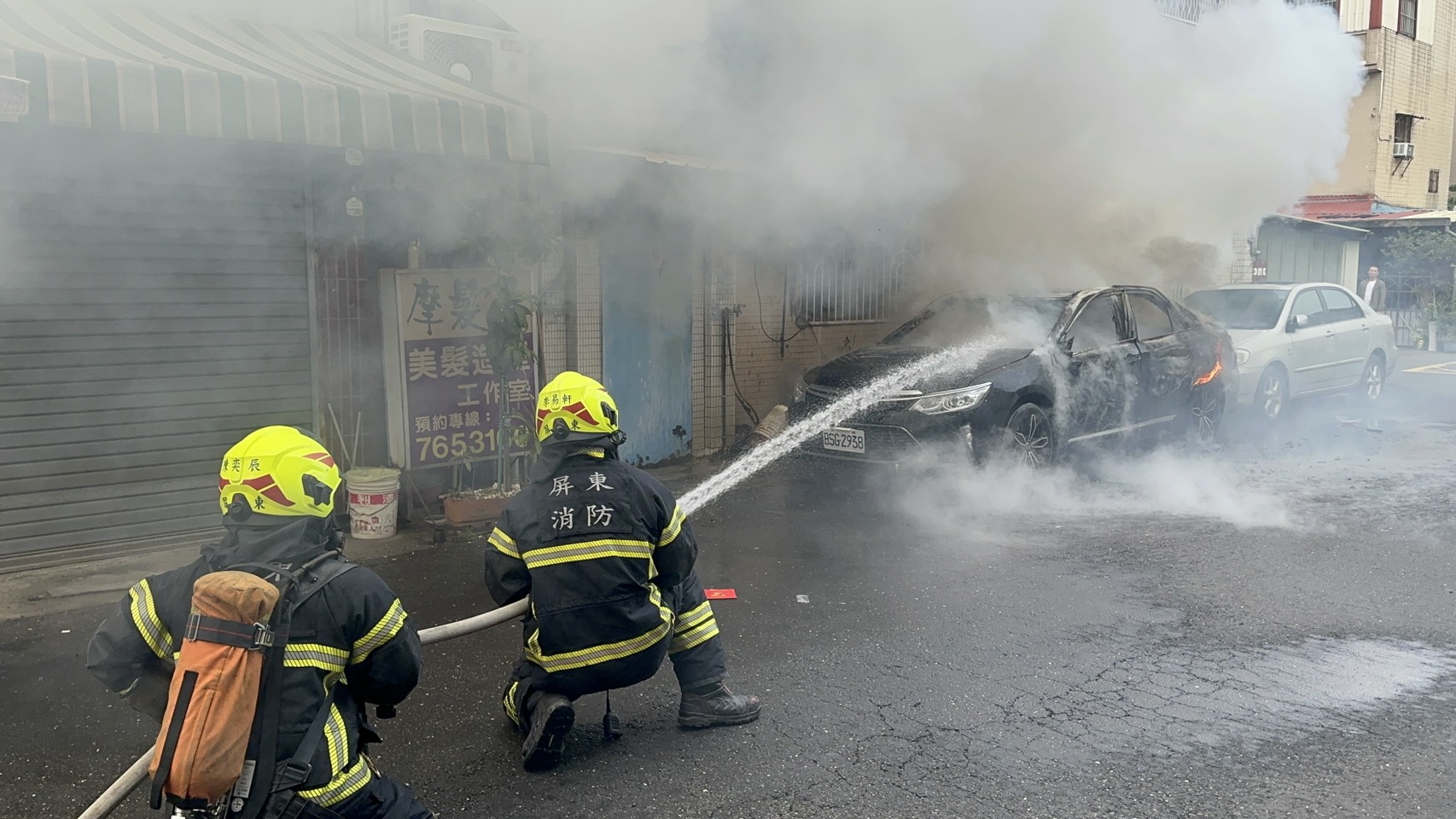 屏東市火燒車消防隊員前往灌救。翻攝畫面
