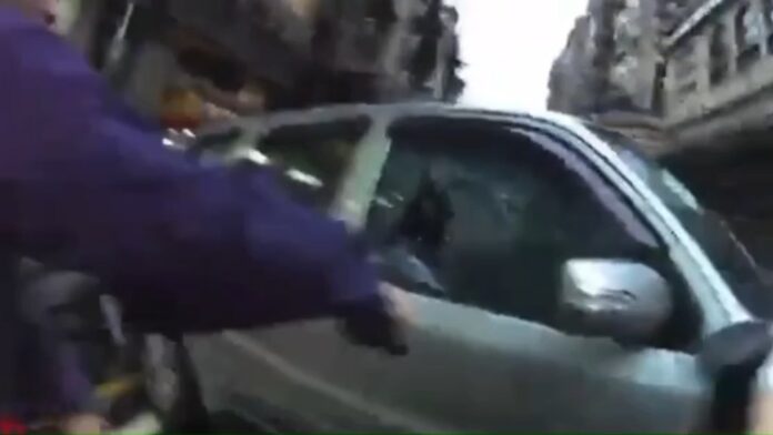警方以警車包夾逼停,並強勢破窗將林男拖下車壓制逮捕。
