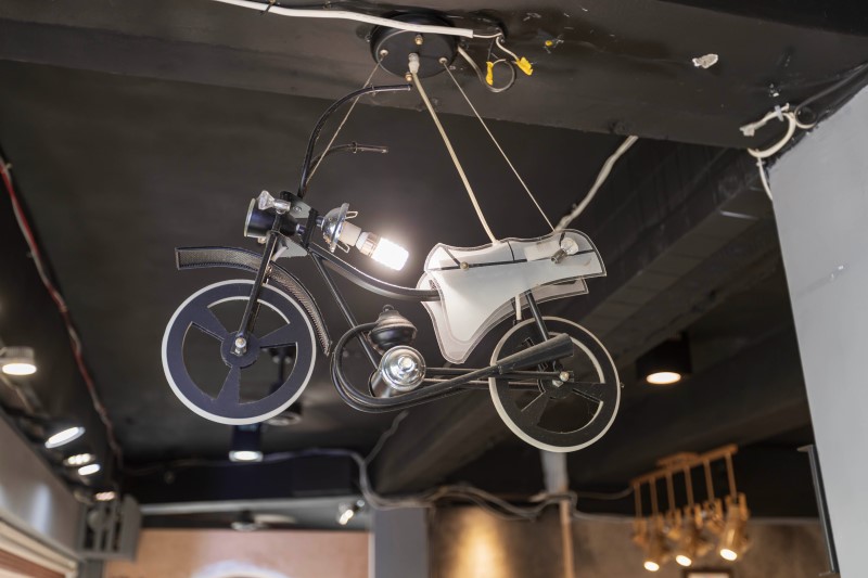 ▲入口處上方還有一個檔車造型燈飾,相當有復古氣息。