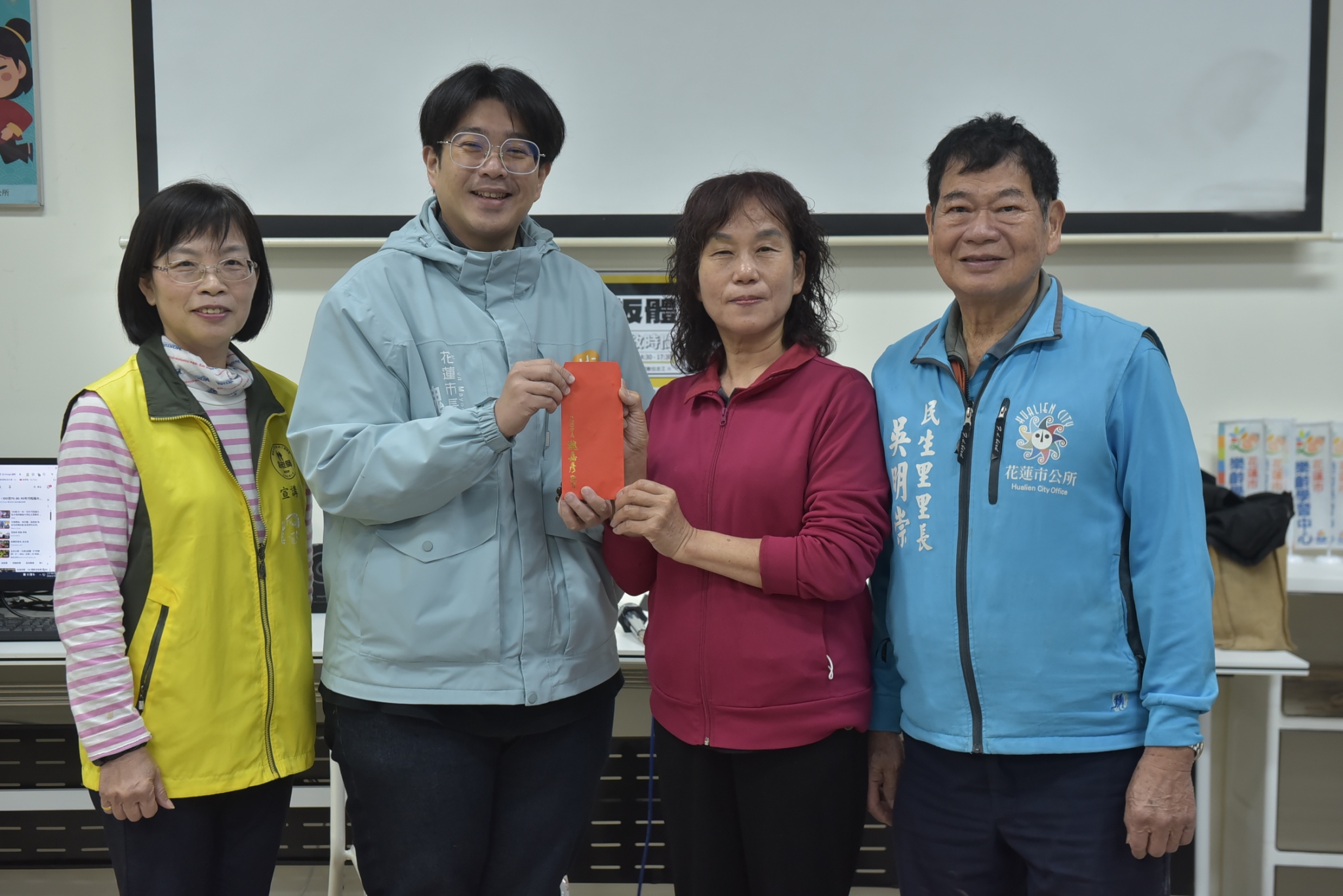 ▲市長魏嘉彥致贈民生社區福氣站加菜金,由社區發展協會理事長黃碧雲(右二)代表接受。