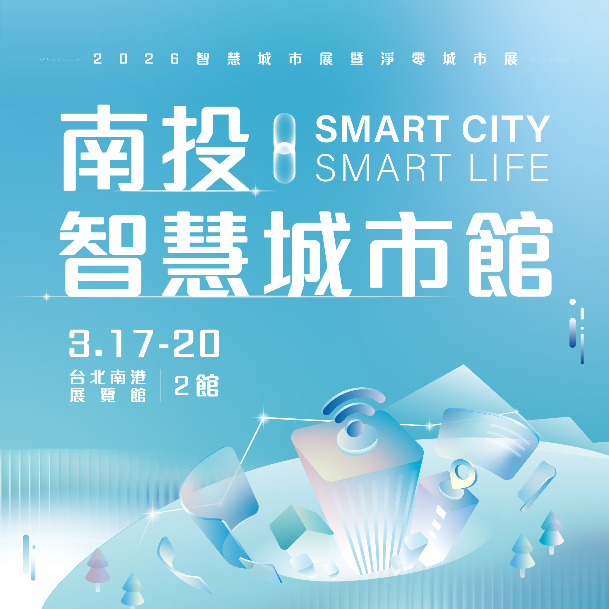 ▲「南投智慧城市館」主視覺亮相:以數位與永續為雙軸,3 月 17 日至 20 日將於南港展覽館展示 20 項 AI 科技與淨零轉型成果。(圖/南投縣政府提供)