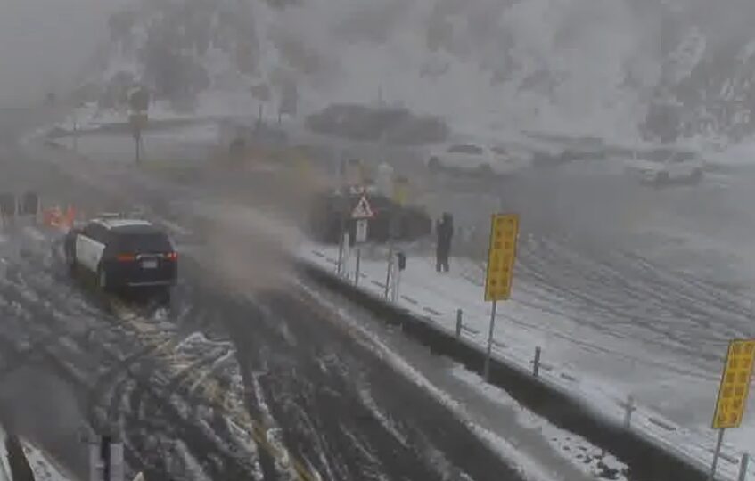 合歡山三月飄雪路面結冰!台14甲翠峰至大禹嶺今17時起只出不進,武嶺雙向封閉禁止通行.(圖/翻攝 合歡山即時影像 YT)