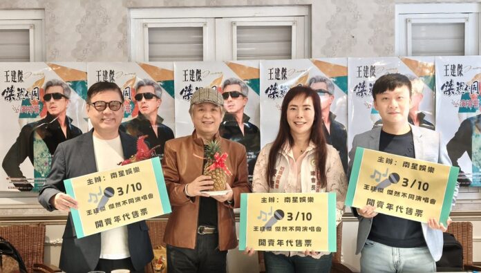 深耕台語歌壇超過四十年的「台語情歌王子」王建傑,將在今年夏天迎來歌唱生涯的重要里程碑。主辦單位宣布,王建傑將於2026年8月15日登上高雄流行音樂中心海音館舉辦出道以來首場個人演唱會《王建傑2026傑然不同演唱會》,門票於今(10)日透過年代售票正式開賣,主辦單位特別舉行記者會為演唱會揭開序幕,邀請各界好友與歌迷共同見證這場音樂盛事。