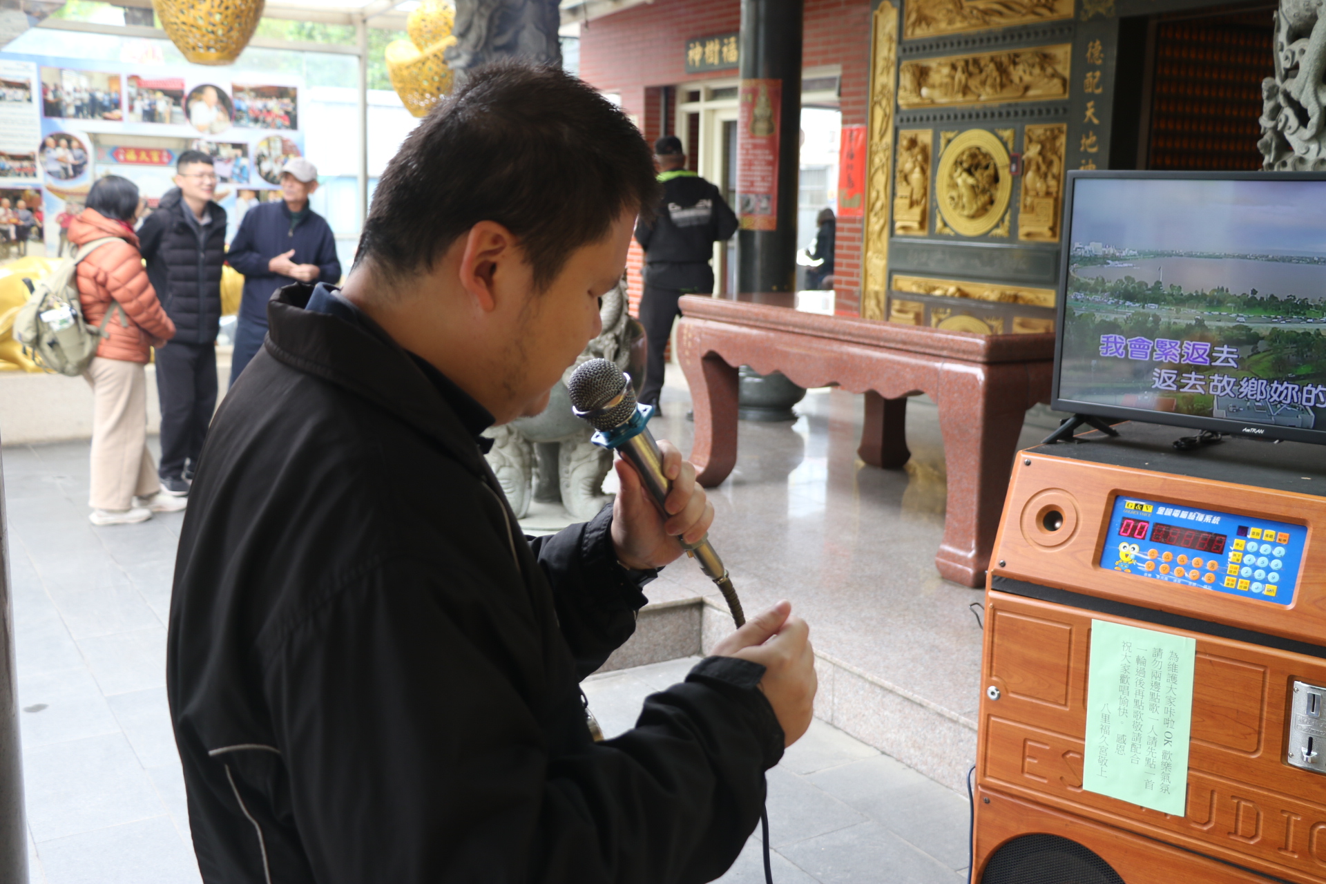 ▲呂坤諭住家前即為台51鄉道,平時車輛頻繁,在樂明中心生活自理老師訓練下,他持白手杖到1公里外的福久宮幫人按摩、唱唱卡拉OK。(圖/新北市社會局 提供)