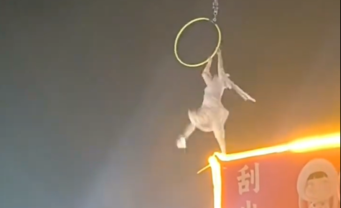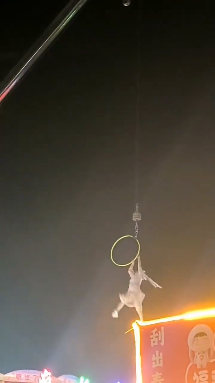 3月11日,河南漯河一名女性雜技演員在老應村表演時,不慎失手從高空中跌落。