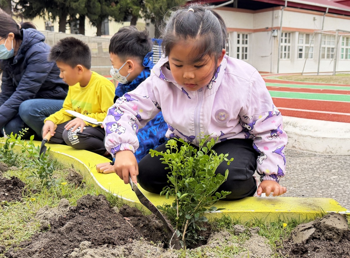 ▲榮成捐贈120棵樹苗給彰化廣興國小師生,並安排植樹體驗課程。(圖/榮成紙業提供)