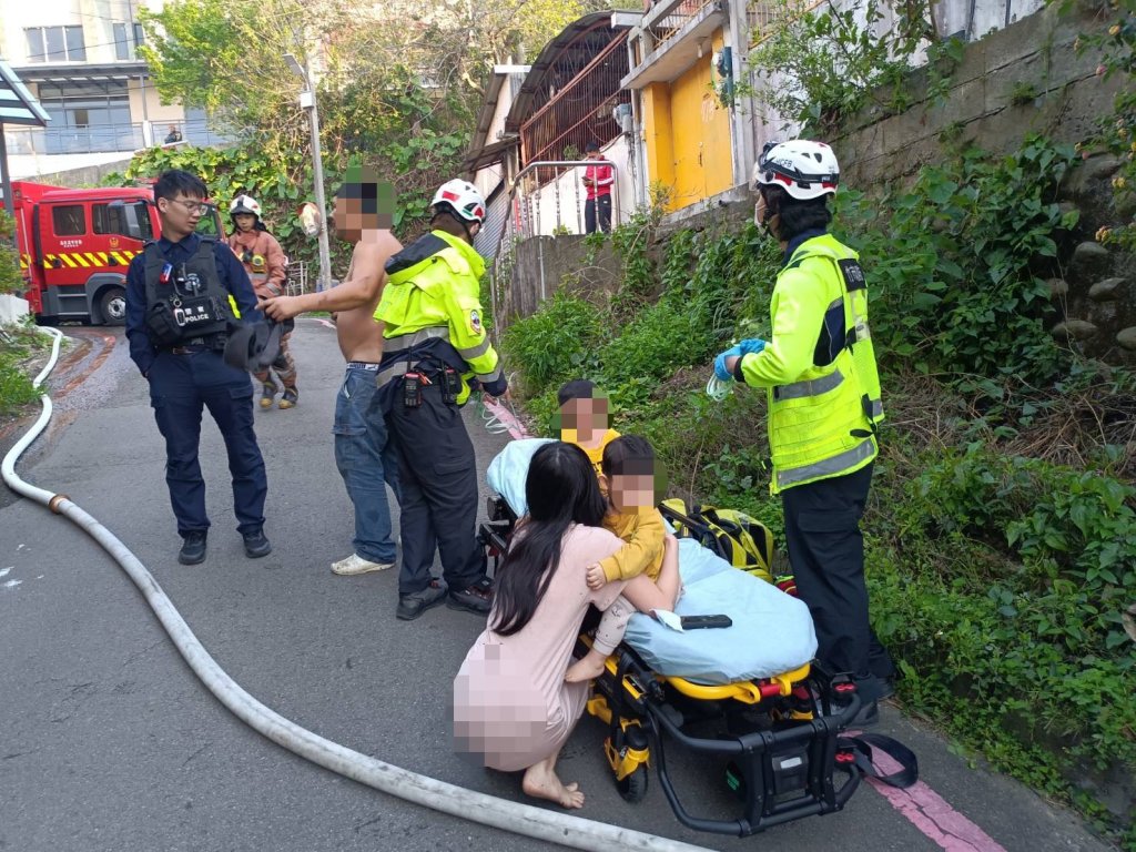 新竹民宅火警消防隊員救出1家4口送醫。翻攝畫面