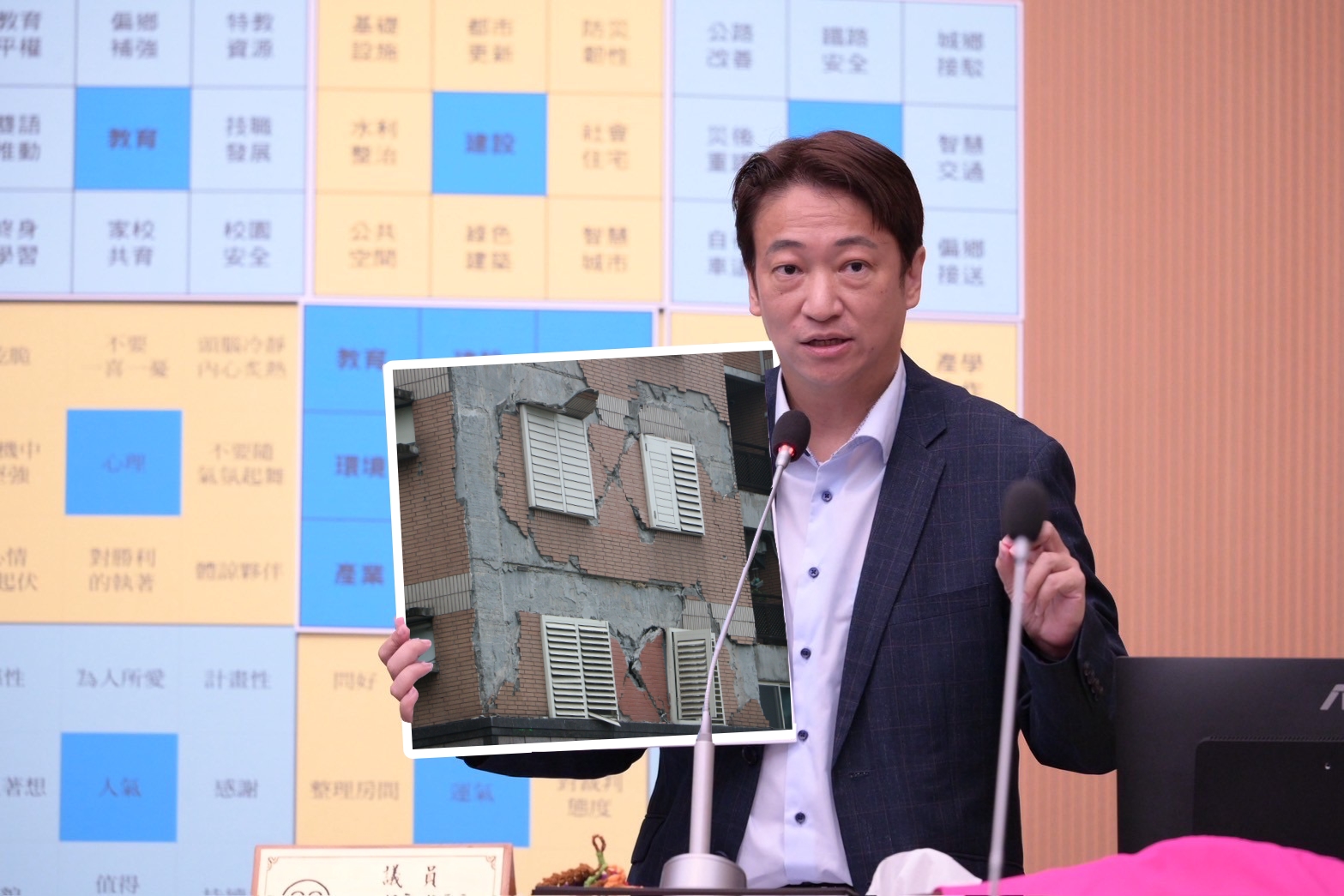 魏嘉賢表示,2024年地震後,花蓮縣有100多棟建築物被判定為紅單或黃單,但至今究竟有多少建物已完成修繕、拆除或補強並解除列管?相關資訊不明。他直言,地震或許可怕,但更令人擔憂的是,民眾走在街上仍隨處可見被封鎖線纏繞未處理的危樓,以及因縣政府未主動且定期公開資訊,宛如在街頭形成「隱形未爆彈」。