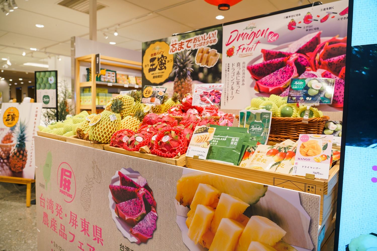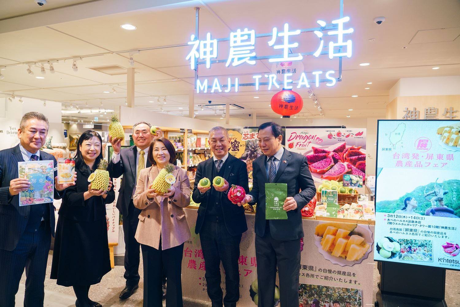 近鐵百貨為日本零售事業指標,其位於大阪的總店更是坐落於日本地標性摩天大樓「阿倍野 HARUKAS」,擁有日本最大的營業面積。該通路集結了國際精品、流行服飾及生鮮食品,且與車站緊密連結,每日往來人潮高達 73 萬人次,客群涵蓋家庭、上班族及國內外觀光客。屏東農產品能進入此規模宏大且具代表性的百貨體系銷售,相當難得,也顯示屏東農產品質受到肯定。
