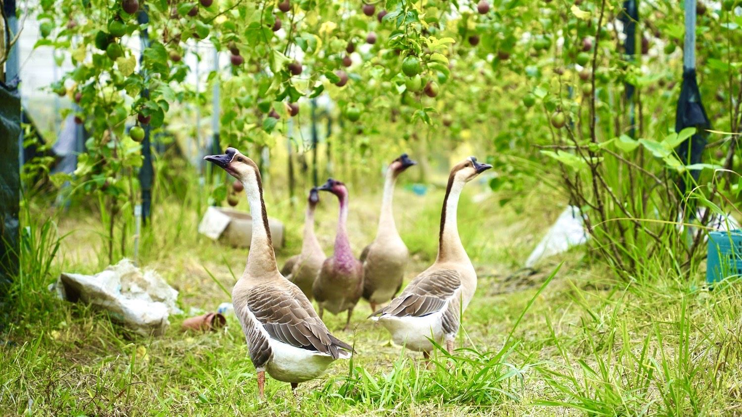 位於高樹鄉的「彩林農園」配合友善農地與生態保育相關計畫,透過維持草生地、減少農藥使用並導入生態友善動物管理方式,營造野生動物可棲息與覓食的環境,近年也記錄到多種猛禽與草鴞在農田活動。農園由李文宮、李淑萍兄妹共同經營,園區採行無毒生態農法,並以被稱為「鵝霸」的鵝群巡守農園,透過自然方式驅離蛇鼠與蟲害。李淑萍表示,家人約在十年前從慣行農法轉型友善耕作,雖初期面臨收成不穩與病蟲害挑戰,但透過持續學習與農友交流,逐步建立穩定的農田生態系。