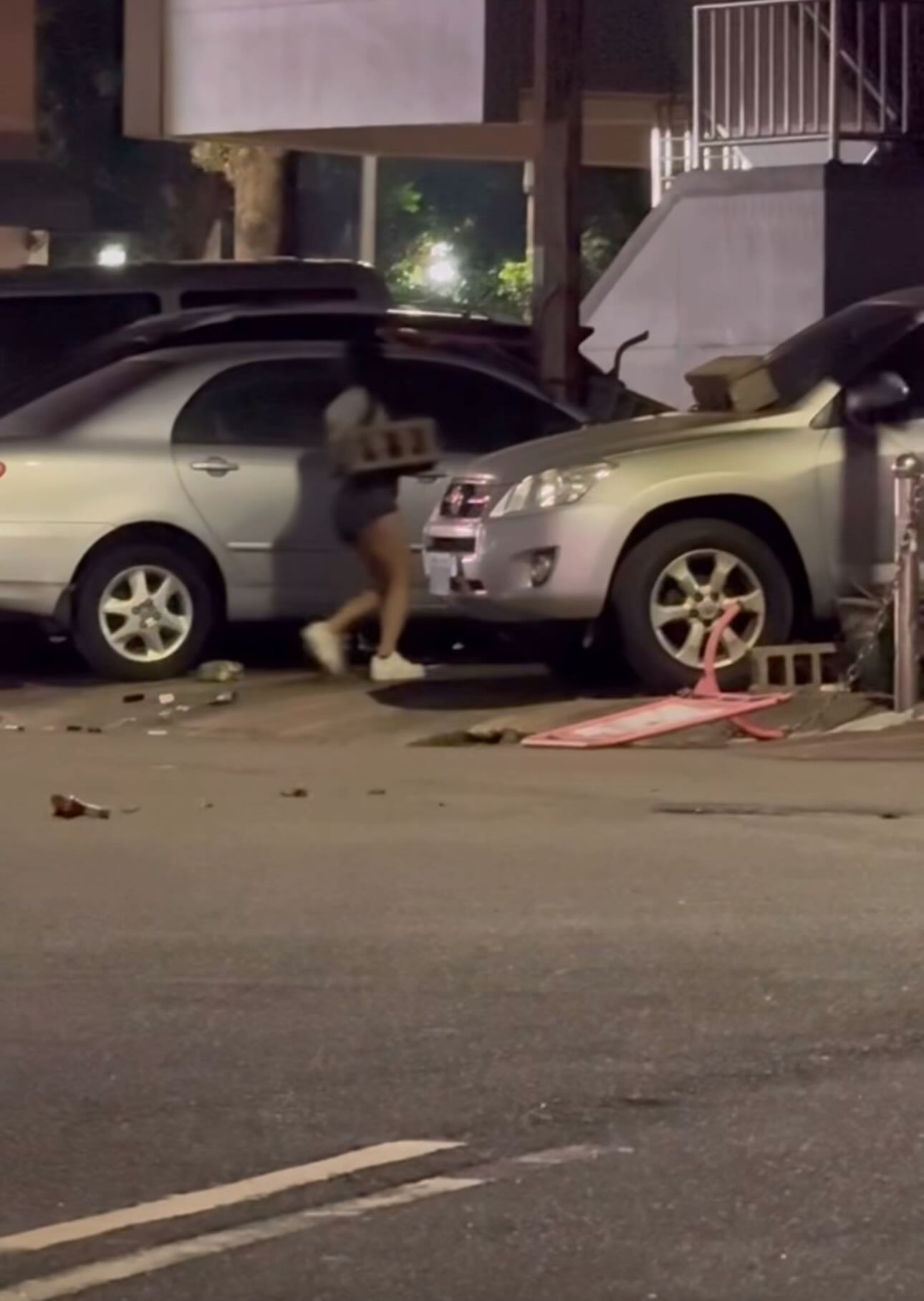 台中酒醉女子持空心磚砸車。翻攝畫面