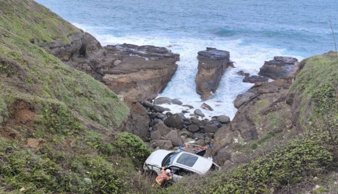 【Lai傳媒、記者爆料網/周庭慶/新北報導】新北市瑞芳區海濱路今(14)日上午發生一起自小客車卡在海邊礁石中的案件!警消人員獲報到場,消防隊員將該車駕駛吊掛至路邊,初步了解該車墜落礁石並非意外,而是男子故意駕車往海裡衝!男子已由消防隊員送醫。