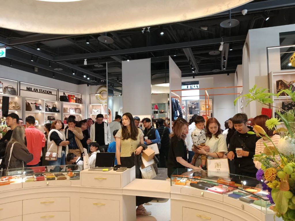 ▲「米蘭站」台中七期老虎城旗艦門市一開幕即吸引大批精品愛好者前往選購。