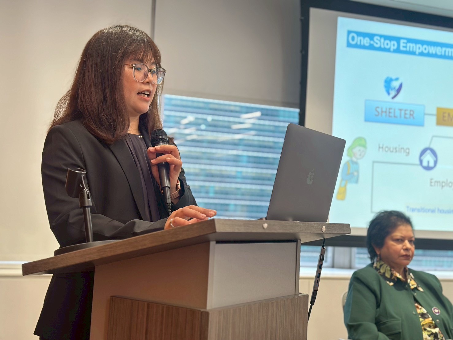 ▲新北市家庭暴力暨性侵害防治中心督導錢淑真於論壇中以「將沉默轉化為正義」為題,分享新北市建構婦女免於遭受性別暴力的生活環境。(圖/新北市社會局 提供)