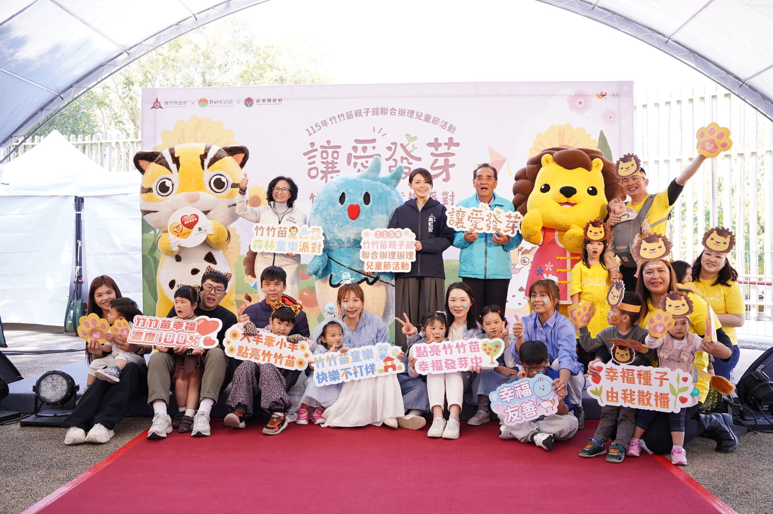 為提供家庭更豐富的陪伴資源,新竹縣政府攜手新竹市及苗栗縣政府,今(14日)在新竹市立動物園盛大舉辦「竹竹苗森林童樂派對:讓愛發芽」活動。現場吸引大批竹竹苗家庭熱情參與,最具人氣的縣府吉祥物「皮皮獅」與竹市皮卡、苗縣貓裏喵同台亮相,邀請孩子們參與趣味闖關,在動物園展開親子探索之旅,場面溫馨熱鬧。