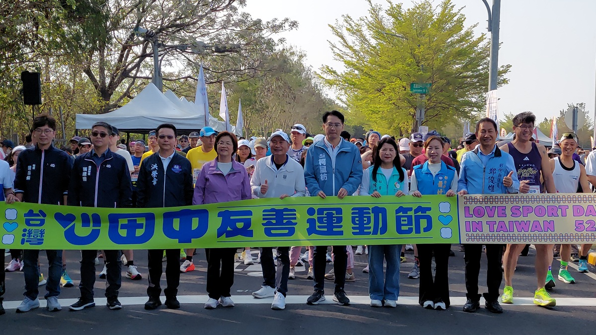 為推廣全民運動與友善參與的理念,「運動i臺灣2.0-寵愛運動嘉年華・心田中友善運動節」15日於彰化縣田中鎮「田中米寶綠園道」熱鬧登場,吸引超過50組銀髮團體,以及眾多親子家庭與可愛毛孩共同參與,近2500位民眾齊聚田中。在彰化縣縣長王惠美、陳素月立委、縣府參議柯呈枋、彰化縣議員鄭俊雄與蕭妤亘、田中鎮公所秘書陳瓊如、及田中馬拉松總幹事鄭宗政等貴賓的熱情加油下,活動熱鬧起跑。
