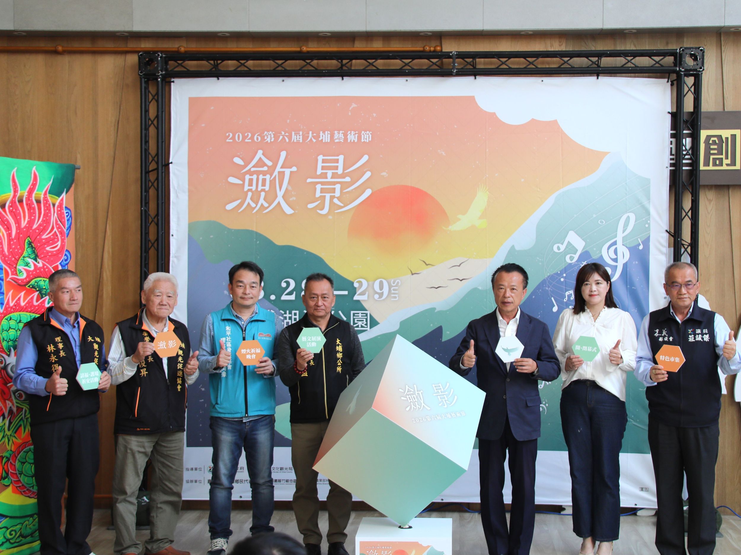 2026大埔藝術節「瀲影」將於3月28日至29日在大埔鄉湖濱公園熱鬧登場,活動融合在地信仰「玄天上帝」文化與多元藝術展演,透過宗教意象與創意表現交織,打造專屬山城的大型藝文盛會。嘉義縣政府於17日舉辦宣傳記者會,為活動暖身,邀請全國民眾走進大埔,感受自然與藝術交融的魅力。