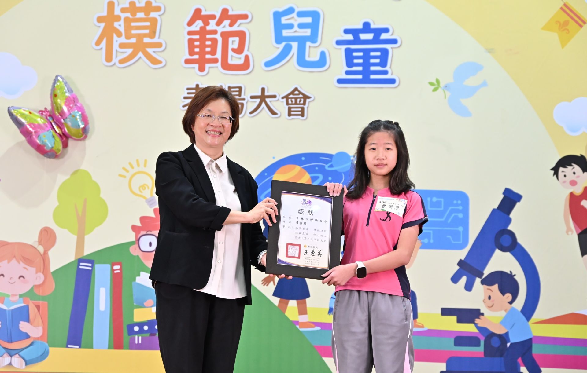 彰化縣政府17日在彰泰國中活動中心舉行「115年度國民小學模範兒童表揚活動」,由彰化縣長王惠美親自頒獎,表揚全縣在品德、學業及多元才藝領域表現優異的模範兒童。王惠美表示,今年共表揚462位模範兒童,在座同學憑藉自身努力寫下精彩故事,不論在學習、運動、藝術或品德都有極為出色的表現。