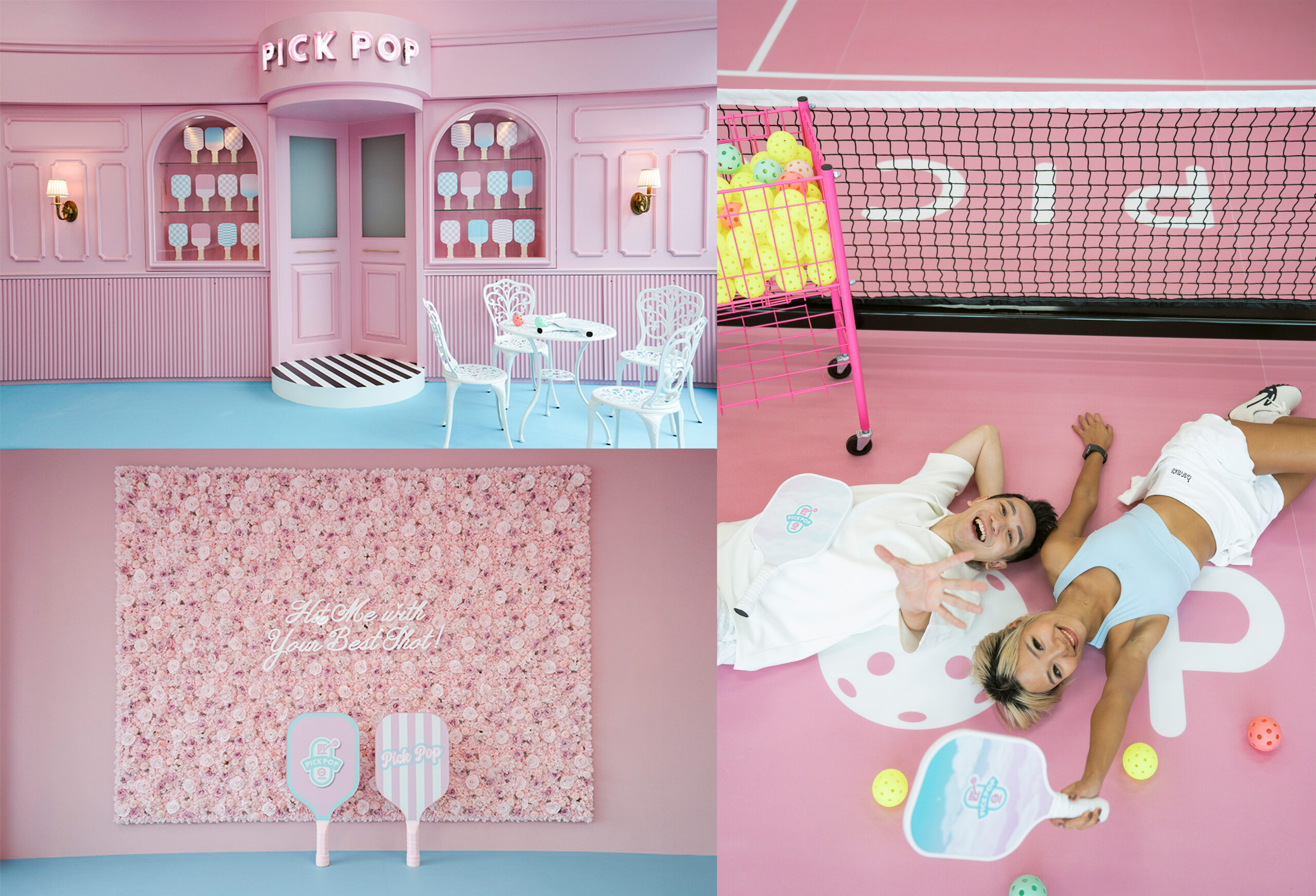 PICK POP 匹旦位於交通便利的九龍灣宏照道23號第一集團中心,全場採用24小時全天候營運模式,讓忙碌的都市人隨時預約參與。場地最大特色在於極度新手友善:免費提供全新專業球拍借用,無需自備裝備;更配備先進自動發球機,方便單人練習或針對性訓練。場內設有舒適休息區及配套設施,讓參與者在激烈對打後能即時放鬆,延續社交氛圍。此外,場地融入多個潮流打卡元素,成為年輕人分享生活的最佳背景。