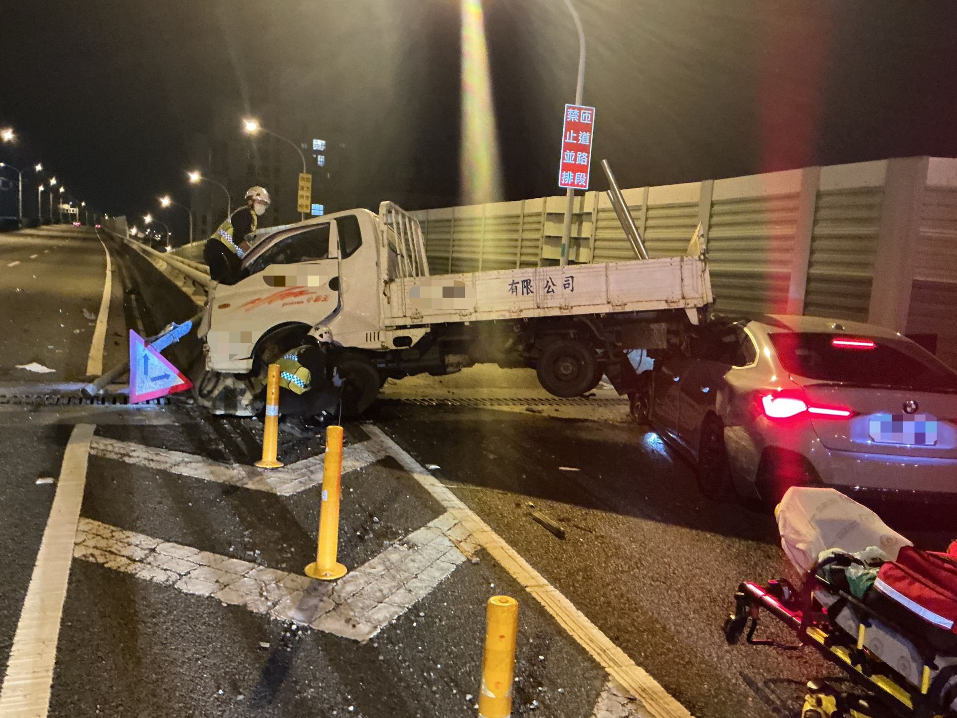 74快速道路深夜連環撞!擦撞後尾隨釀追撞 3人送醫.(圖/警方提供)