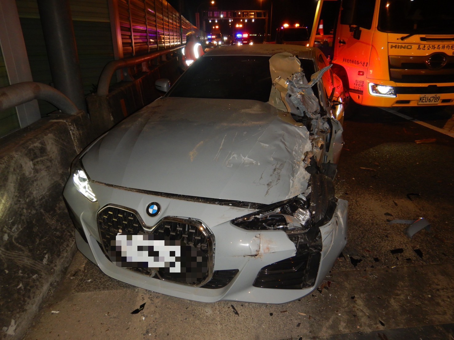 【Lai傳媒、記者爆料網/林千允/ 報導】台中大里今(19)日凌晨傳出驚險車禍!一輛小貨車與自小客車在台74線往太平方向發生擦撞後,竟持續在同一路段行駛,未料短短時間內再度釀禍。警方指出,事故發生於凌晨1時許,地點在大里匝道前,小貨車先是不明原因自撞護欄,緊跟在後的BMW因反應不及,直接撞上車尾,撞擊力道猛烈,BMW左側車身撞到嚴重毀損,零件散落一地。