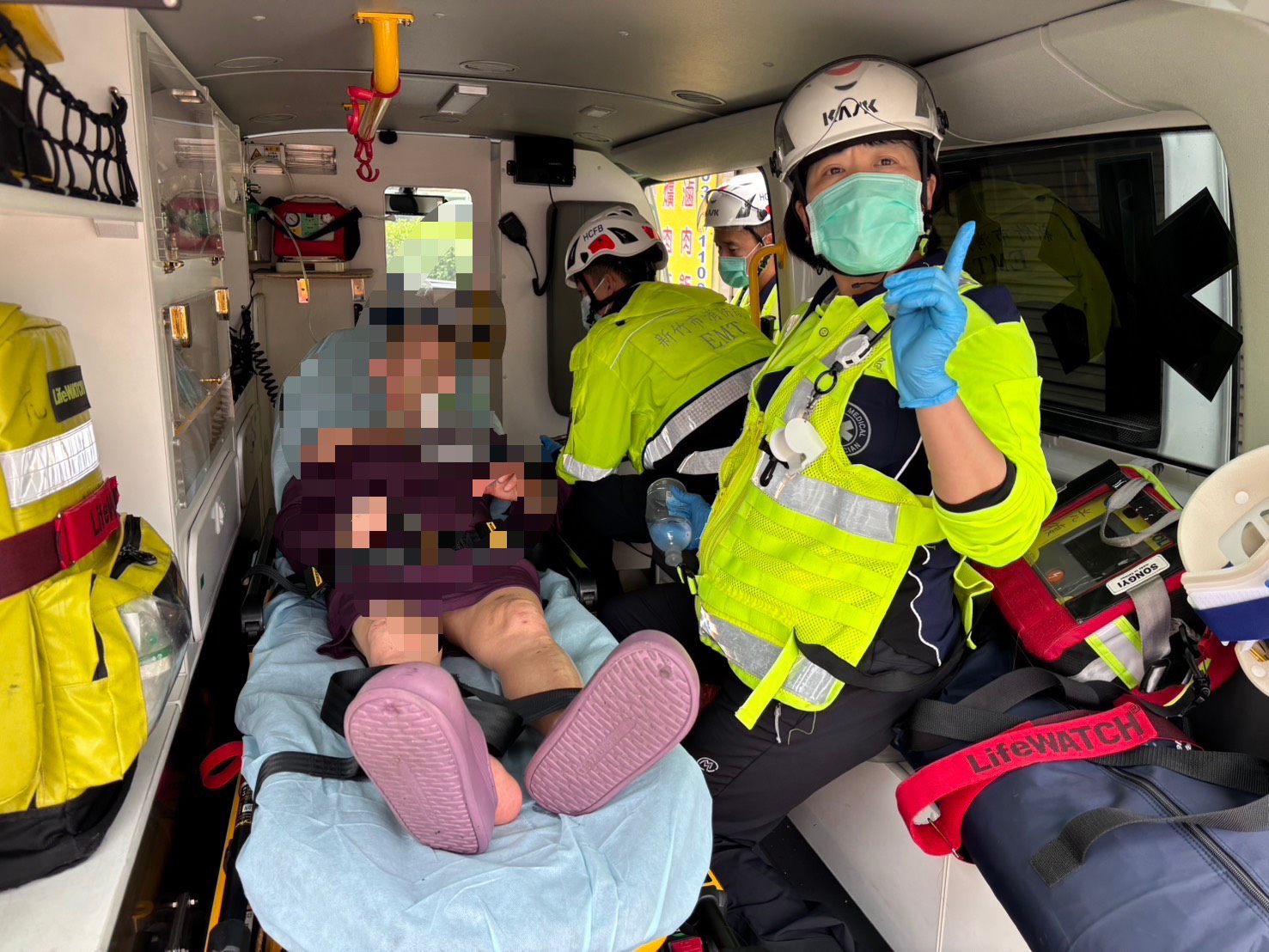 10時3分現場火勢撲滅,現場1名年約60歲女子手部部分燒燙傷,意識清楚,由救護車送醫。