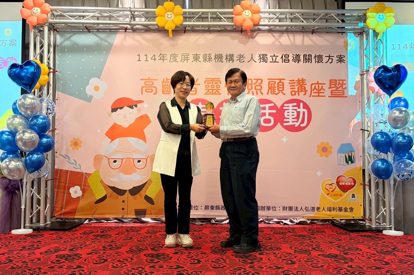 本縣績優倡導關懷人許煥昇與蔡保泰,分別於109年及112年加入服務行列。兩位雖已年逾古稀,仍以滿滿熱忱投入服務,用真誠與耐心陪伴機構中的無依長輩,展現銀髮族的生命力與社會責任。