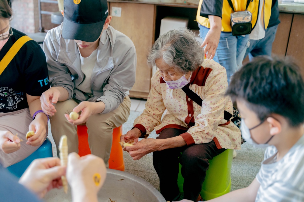 ▲志工們與地方長輩一同加工葛鬱金,彰顯溫暖的世代傳承與共融。(圖 / Tokyo Electron Taiwan)